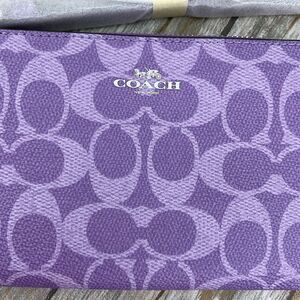 Corner Zip Wristlet In Signature Canvas Silver Iris Wallet Bag Purse