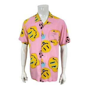Cornerstore Bodega Pink Stoned Happy Face Mushroom Camp Shirt Mens L New $79.00
