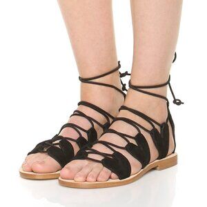 These rich suede Cornetti gladiator sandals come with slim suede laces. Low, stacked heel with nonslip rubber patch.