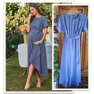 Cornflower Blue Split Hem Maternity Nursing Maxi Dress - NWT, Size S
