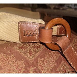 Cornhusk Yellow Fabric Fossil Hobo HandBag w Leather Strap & Wood Rings Boho 80s