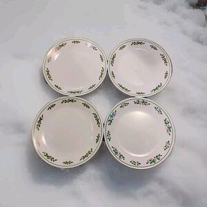 Add a touch of vintage charm to your holiday table with this set of four Corelle dinner plates. The plates feature a glossy white center with a festive green rim adorned with Christmas Holly patterns. These plates are perfect for Christmas and winter occasions, and will complement any holiday theme you choose.