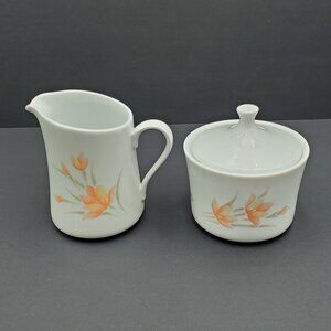 Corning Peach Floral Creamer & Sugar Bowl Corelle Peach Floral Sugar Creamer Set