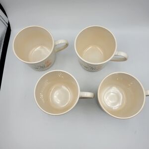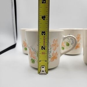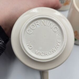 Set of 4 lovely Corning coffee mugs in beautiful Glenora pattern. This pattern boasts sweet pink/peach and blue florals with greenery.