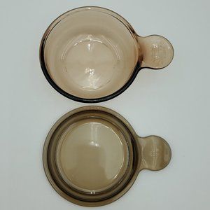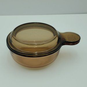 Corning Amber Vision Grab It Bowl with Glass Lid. Corningware Grab-It Bowl, Casserole Dish, Food Storage Bowl with Lid. V-150-B bowl measures 5.5" wide and 2" deep. Excellent pre-owned condition with very minimal scratch.