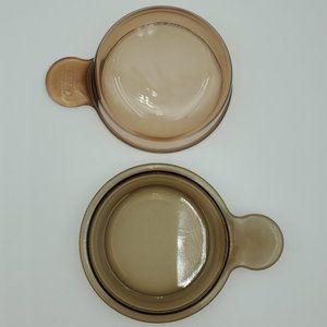 Corning Amber Vision Grab It Bowl with Glass Lid. Corningware Grab-It Bowl, Casserole Dish, Food Storage Bowl with Lid. V-150-B bowl measures 5.5" wide and 2" deep. Excellent pre-owned condition with very minimal scratch.