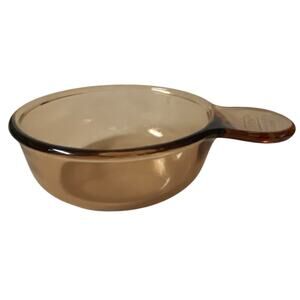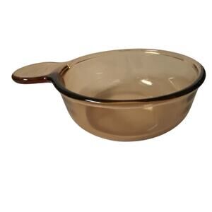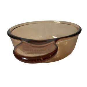 Vintage Corning Visions Heat 'n' Eat Grab It Bowl V-150-B Amber Glass w/V-150-PC Lid