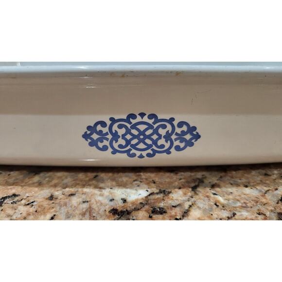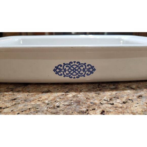 Corning Ware Baking Dish 12"x 7 1/2" x 2" Blue Medallion Macrame P-332 Shell Oil