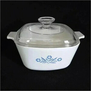 Corning Ware Blue Cornflower Dish 1 3/4 Quart P-1 3/4-B Lid Made in USA Vintage