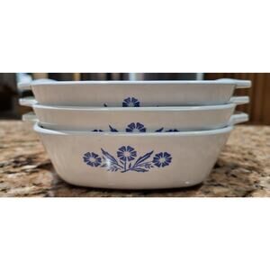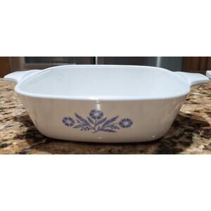 This set of three petite casserole pans from CorningWare features the charming Blue Cornflower pattern, adding a touch of floral elegance to your kitchen. These vintage original pans are perfect for cooking your favorite recipes in electric or gas ovens, and are made right here in the United States. Each pan has a capacity of 16 ounces, making them ideal for individual portions or small side dishes. This set of Blue Cornflower petite pans is a must-have for any collector of decorative cookware, dinnerware, and serveware. Don't miss out on the opportunity to add a touch of vintage charm to your kitchen with these original CorningWare pans.