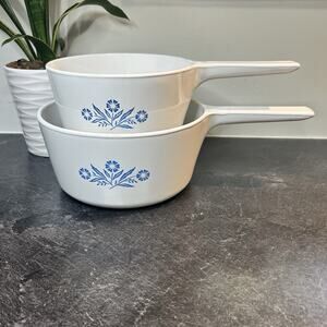 Corning Ware Cornflower Blue 2.5 & 1.5 Qt Range Topper Metal Cooking Base Pots