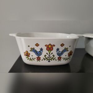 Corning Ware Country Festival Blue Birds Design Casserole Dishes With Lids