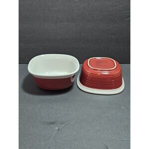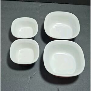 Corning Ware Etch Brick Red Stoneware Casserole Square 20 oz & 7 oz Four Dishes