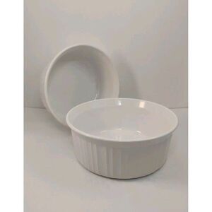 Corning Ware F-5-B French White Casserole Dish Bowl 1. 6 Liters Ribbed Ovenware