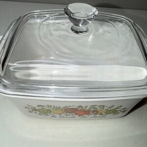 Add a charming vintage classic to your kitchen with this Corning Ware P-4-B Spice of Life casserole dish, featuring the “Le Persil La Sauge” vegetable motif and its matching glass lid. This smaller rectangular casserole is perfect for side dishes, reheating, or serving.