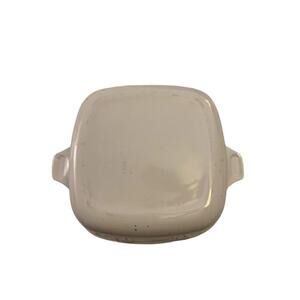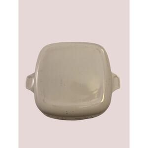 The Corning Ware Shadow Iris Casserole Dish P-43-B is a square, white ceramic bowl with a capacity of 700 mL. It is an original piece from the 2000-2009 time period, featuring a smooth ceramic surface coating. This collectible bakeware item is part of the CorningWare brand, making it a sought-after piece for those interested in kitchen and home collectibles.