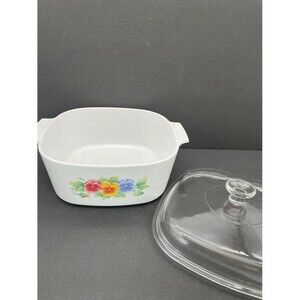 This vintage CorningWare casserole dish in the Spring Blush pattern is a stunning addition to any kitchen. Made of scratch-resistant pressed glass with a glossy ceramic surface coating, it boasts a flat-bottomed construction that makes it perfect for stove-top cooking and oven baking. With a 5 litre capacity and included lid, this casserole is both microwaveable and easy to clean.