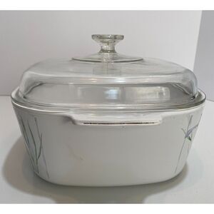 CorningWare 5 Qt Cassarole Dish w/lid A-5-B Iris Blue Purple Flowers USA Made