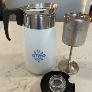CorningWare 9 Cup Stove Top Percolator Cornflower Pattern Coffee Pot