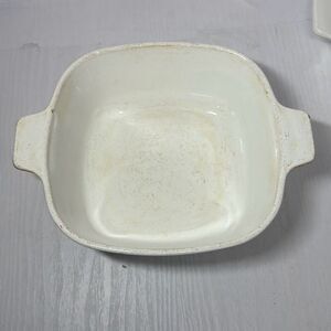 Corning Ware Blue Cornflower 1 Quart Casserole Dish and 1 1/2 QT P-11/2-B. Pyrocream. Made in the US. The 1 1/2 Quart Dish shows heavier use.