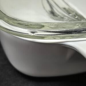 CorningWare Blue Cornflower 1.5 & 2 QT. Stoneware Casserole Dish x2 & Glass Lid. Both dishes are in great preowned condition, the lid does have a chip & small crack as shown.