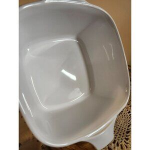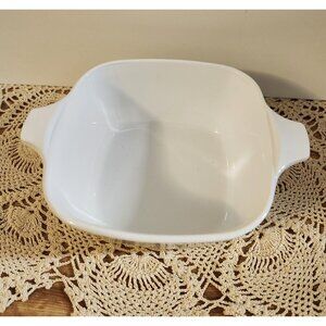 Vintage Corningware P-43-B square casserole pan. Country Cornflower print features blue flowers in a basket with a blue ribbon. Produced between 1988-1993 this vintage dish is in good condition with minima utensil marks and wear to the bottom. No chips or rough edges. 1848