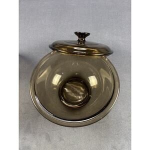 The Corningware Pyrex Amber 322 (1 Qt.) & 323 (1.5 Qt.) Set of 2 with lids is a vintage Dutch oven set manufactured in 1970 using a fused glass production technique. These casserole dishes are made by the well-known brand CorningWare and feature an amber brown color. Perfect for cooking and serving meals, this set of 2 Dutch ovens is a durable and decorative addition to any kitchen.