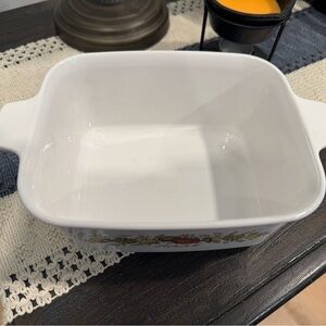Sleek Corningware dish. Smooth white surface. Excellent used vintage condition, one small rough area on side of lid. Not noticeable and very small. Holds 1.5 liters, oven dishwasher safe
