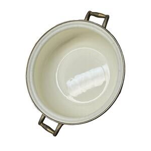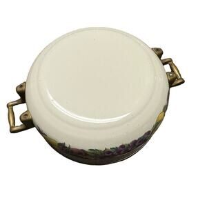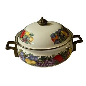 Cornucopia Enamel Cooking Dutch 8” Oven Pot Lid Fruit Design Brass Trim Cottage