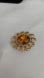 Citrine colored lucite stone set in goldtone scalloped frame