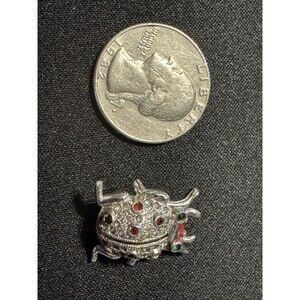 Coro Lady Bug Vintage Blue Crystal Eyes Pendant
