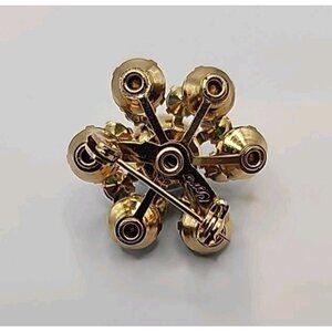 The Coro Signed Vintage Atomic Blue Green Crystal Mid Century Floral Burst Brooch is a stunning piece of retro jewelry from the 1935-1950 era. This vintage brooch features a beautiful floral design in shades of blue and green, with a silver tone metal base and green crystal accents. Signed by the renowned brand Coro, this brooch exudes a mid-century charm and sophistication that is sure to add a touch of vintage flair to any outfit.