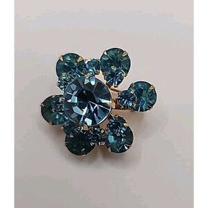 Coro Signed Vintage Atomic Blue Green Crystal Mid Century Floral Burst Brooch