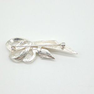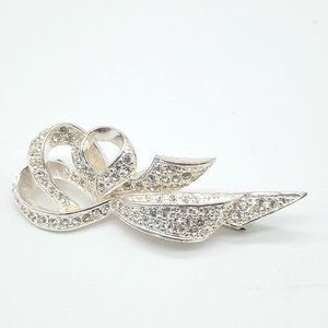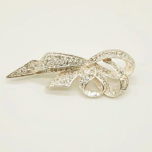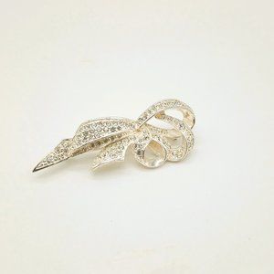 Coro Silver Crystal Ribbon Brooch. Silver Cluster Spray Bow Pin