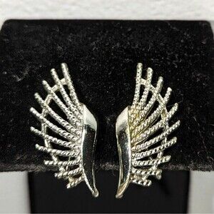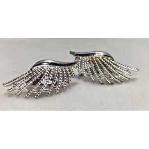 Vintage Coro silver tone wings that climb slightly up the ear. Clip-ons and have a bit of wear. Measurements are approximate: 1.25 inch