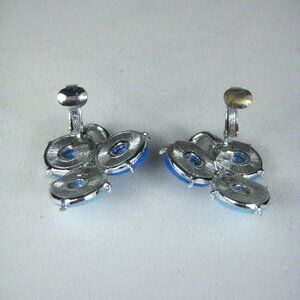 Coro Vintage Blue Lucite Clip On Earrings Silver Tone Grape