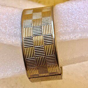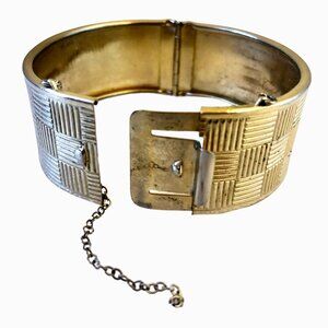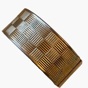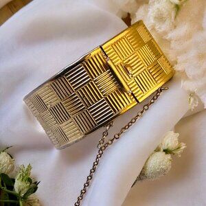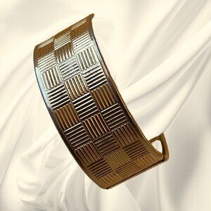 Coro vintage hinged bracelet in gold-tone metal with basket weave pattern. Signed patented.