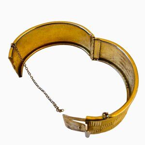 Coro Vintage Hinged Bracelet Gold Tone Basket Weave Signed FLAW