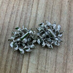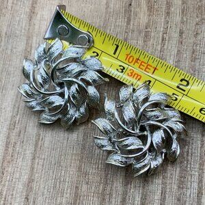 Coro Vintage Silver Tone Metal Flower Clip Earrings