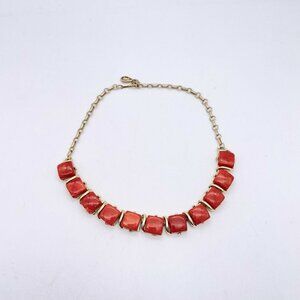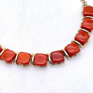 Coro Vintage Women's Orange Square Necklace Gold Tone Chain
