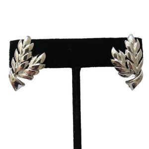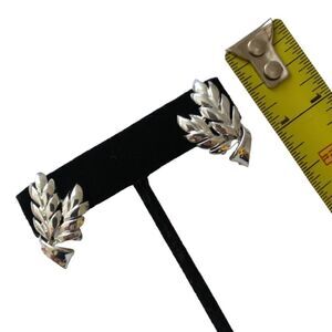 Coro Wheat Earrings Silver Tone Feather Clip On Rococo Baroque Swirled Floral.