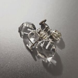 Coro White Crystal Bead Dangle Drop Earrings Silver Tone Vintage