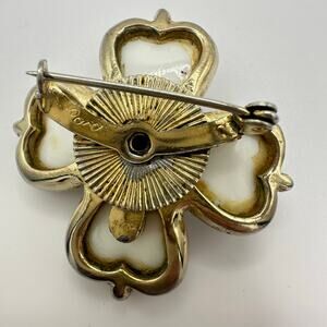 Coro vintage gold tone true gripoix poured white milk glass 4 leaf clover brooch
