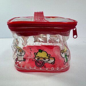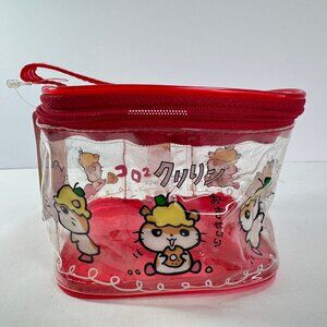 New with original tag. From 1998 Small clear & red vinyl zipper closure soft case bag with handle. Could be a cosmetics or travel bag. Different cute graphics of Corocorokuririn from Sanrio around sides.