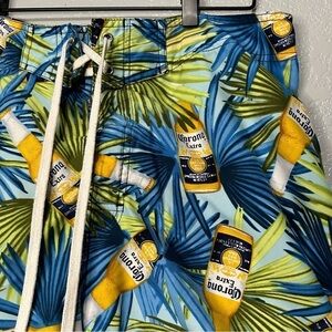 Tropical beer swim shorts by Corona Extra, pullover, one side pocket. Good preloved condition, no visible flaws noted.