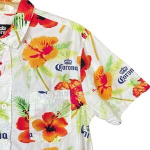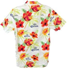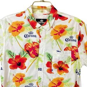 Corona Beer Floral Short Sleeve Button Down Shirt Casual M