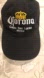 Black hat with Corona logo. Features gold crown and white text. Casual and stylish. This is unisex can be for men or women