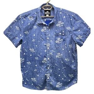 Corona Crown Extra mens beer shirt size XL short sleeve button up color blue pocket.