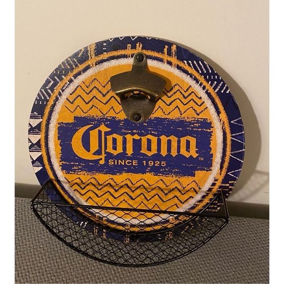 Corona wall hanging mounted Beer Bottle Opener storage basket cap holder Man Cav