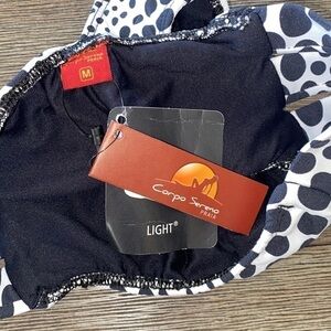 Corpo Sereno Praia bikini bottom. Strappy sides. Dotted black and white. These are tiny but have quite a bit of stretch. Size M. Never been worn still has tags.